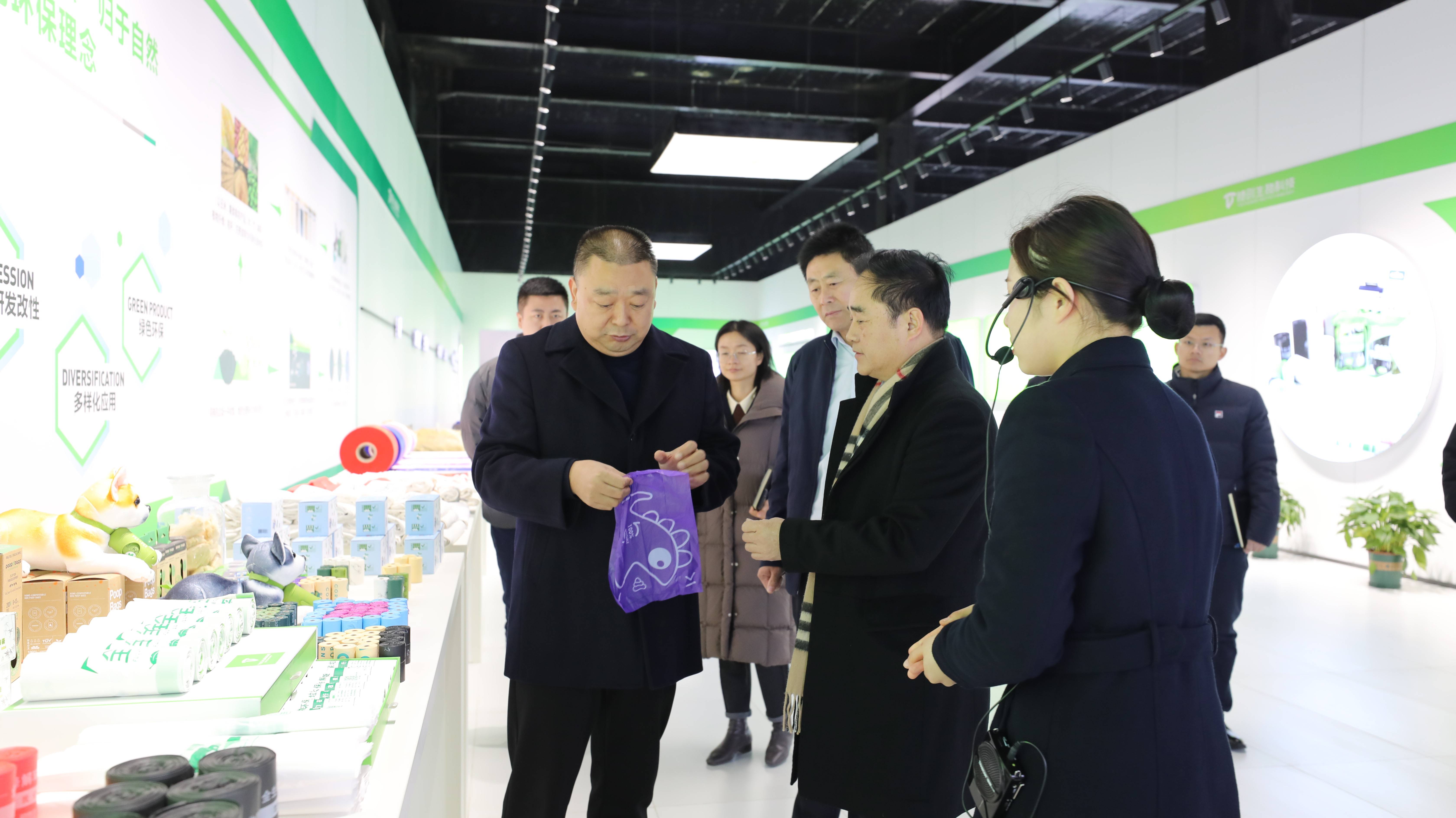 在河南特創(chuàng)生物科技可降解產(chǎn)業(yè)園,徐永新一行參觀了可降解產(chǎn)品展廳和研發(fā)中心,從原材料改性造粒、吹膜、印刷,再到公司生產(chǎn)的膜袋類、一次性餐具類、農(nóng)業(yè)類、紡織服裝類、醫(yī)療衛(wèi)生類等五大領(lǐng)域,八大系列產(chǎn)品,展示了全生物降解塑料的廣泛應(yīng)用領(lǐng)域,以及特創(chuàng)生物豐富的產(chǎn)品系列。在生物降解材料生產(chǎn)車間,徐永新一行參觀了現(xiàn)代化生產(chǎn)線,詳細(xì)了解了生物降解材料的生產(chǎn)工藝和流程,還現(xiàn)場體驗(yàn)了全生物降解快遞袋的拉伸強(qiáng)度等性能。