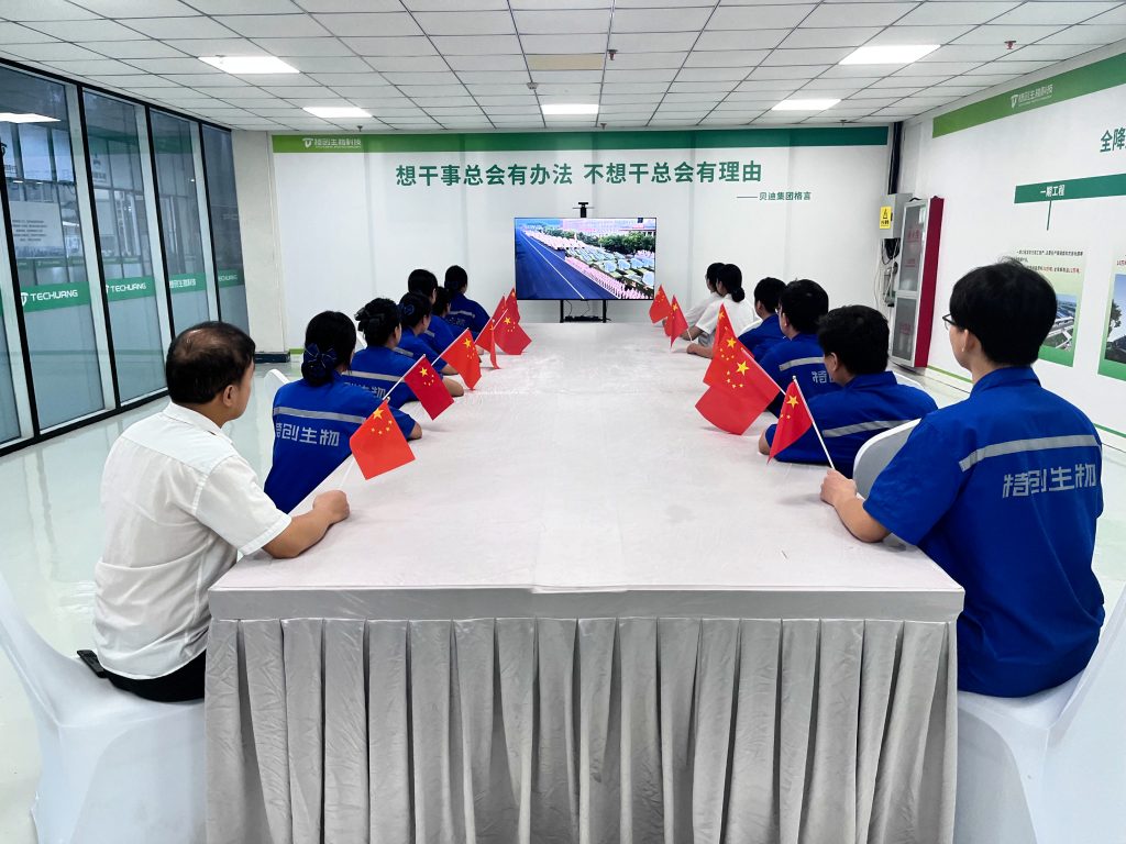 9月3日上午,河南特創(chuàng)組織公司員工集中觀看紀(jì)念中國人民抗日戰(zhàn)爭暨世界反法西斯戰(zhàn)爭勝利80周年閱兵式直播。