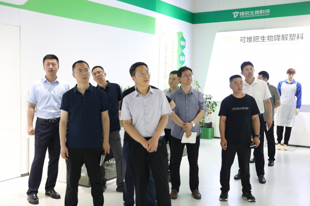 郜善軍一行首先來到公司產(chǎn)品展廳,詳細(xì)了解了河南特創(chuàng)豐富的可降解產(chǎn)品系列,對(duì)公司產(chǎn)品的技術(shù)領(lǐng)先性、環(huán)保效益及市場(chǎng)前景給予高度評(píng)價(jià)。他指出,河南特創(chuàng)在可降解材料領(lǐng)域的深耕,契合全球環(huán)保潮流與國家綠色發(fā)展戰(zhàn)略,前景廣闊。隨著環(huán)保意識(shí)的提升與政策扶持,可降解材料市場(chǎng)將迎來爆發(fā)式增長(zhǎng),河南特創(chuàng)的技術(shù)實(shí)力與市場(chǎng)拓展能力將成為行業(yè)發(fā)展的重要驅(qū)動(dòng)力。