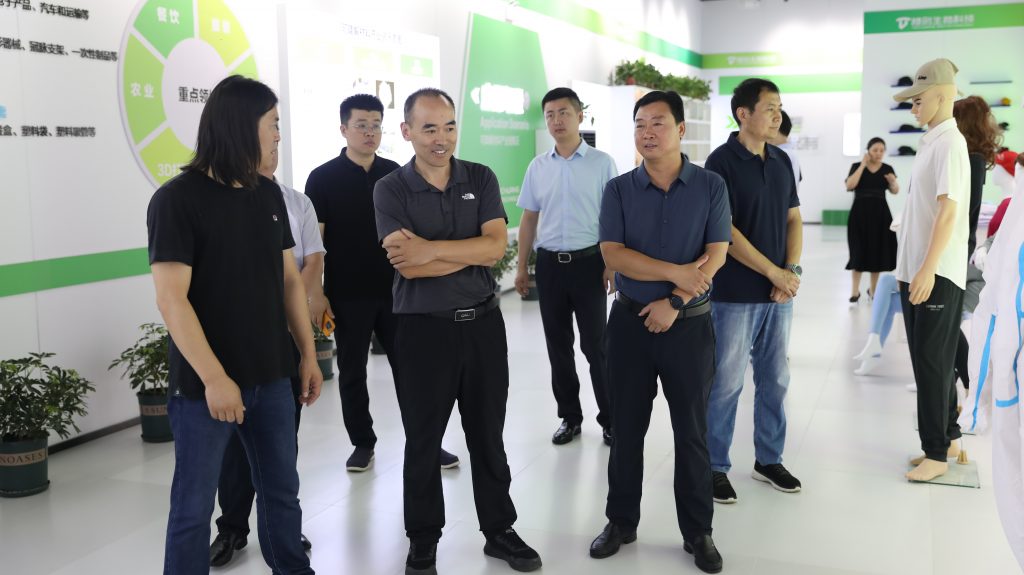 在公司領(lǐng)導(dǎo)的陪同下,魯軍董事長(zhǎng)、程小軍行長(zhǎng)一行首先參觀了公司的產(chǎn)品展廳、研發(fā)中心,近距離感受了河南特創(chuàng)在生物基可降解領(lǐng)域的創(chuàng)新成果。通過現(xiàn)場(chǎng)講解與演示,考察團(tuán)對(duì)河南特創(chuàng)在技術(shù)創(chuàng)新、產(chǎn)品研發(fā)及市場(chǎng)應(yīng)用方面的能力有了更加直觀和深入的了解。